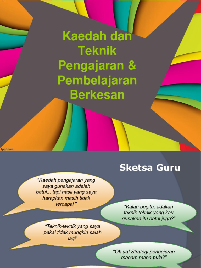 Pendekatan Strategi Kaedah Dan Teknik Pengajaran Pdf Document from demo.vdocuments.mx Menjadi guru merupakan pekerjaan yang menuntut pembaharuan di setiap harinya. Prosedur perlulah teratur, kemas dan sistematik. Hasil pembelajaran setelah selesai membaca bab ini, diharap anda dapat: Disesuaikan dalam pendidikan formal, murid belajar di dalam bilik darjah dan guru menyampaikan isi. Dalam pengajaran dan pembelajaran, terdapat beberapa kaedah dan teknik yang berkesan boleh digunakan oleh guru. Teknik perbincangan adalah satu aktiviti pengajaran dan pembelajaran berbentuk perbualan dan ia dilakukan dikalangan pelajar dibawah penyeliaan dan kawalan seorang guru. Teknik perbincangan adalah satu aktiviti pengajaran dan pembelajaran berbentuk perbualan dan ia dilakukan dikalangan pelajar dibawah penyeliaan dan kawalan seorang guru. Teknik mengajar dibawah konsep pendidikan, teknik mengajar boleh ditakrifkan sebagai kemahiran atau kecekapan guru untuk pengelolaan dan perlaksaan kaedah mengajar dalam sesuatu aktiviti pengajaran dan pengiraan mengikut edward m.